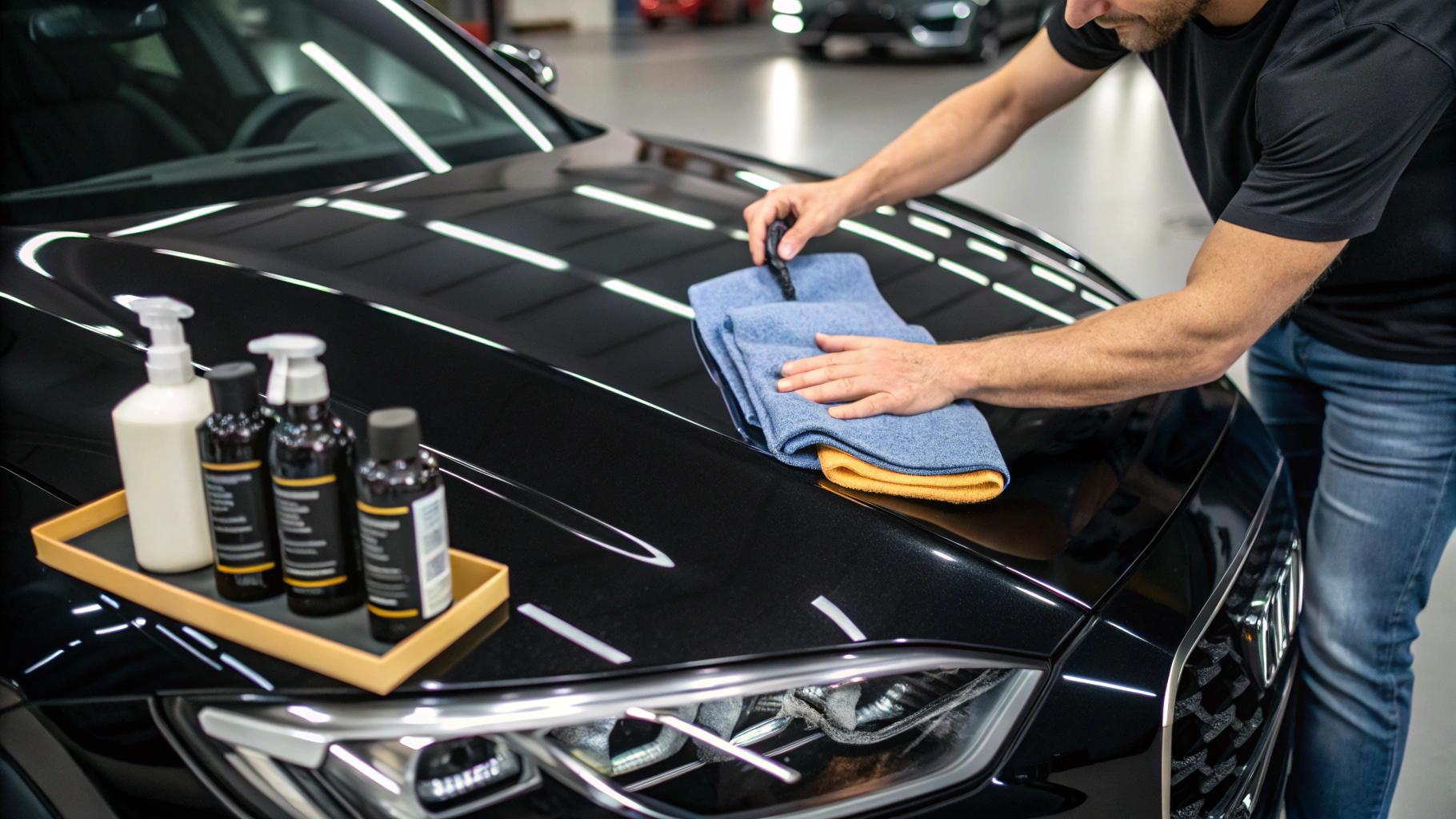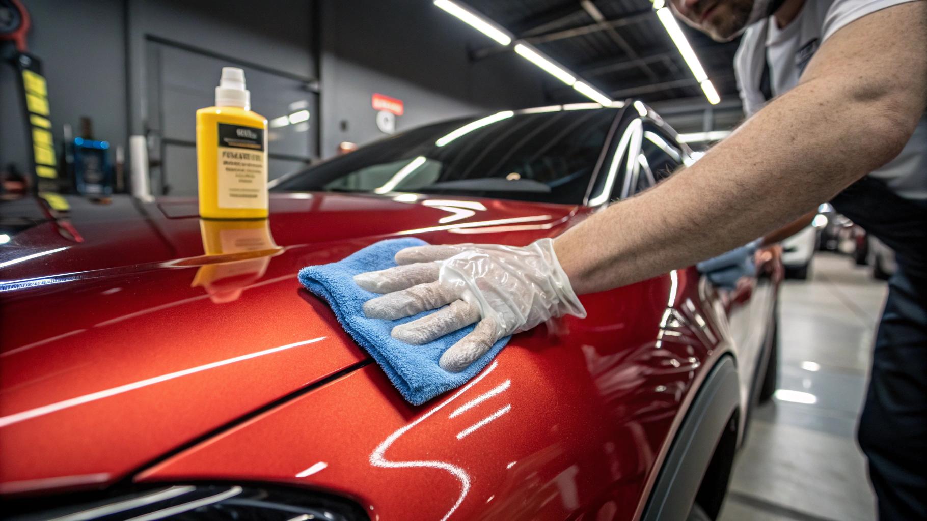 Po glinkowaniu lakieru umyj ponownie auto szamponem i osusz, by usunąć resztki lubrykantu. Test foliową rękawiczką potwierdzi sukces.