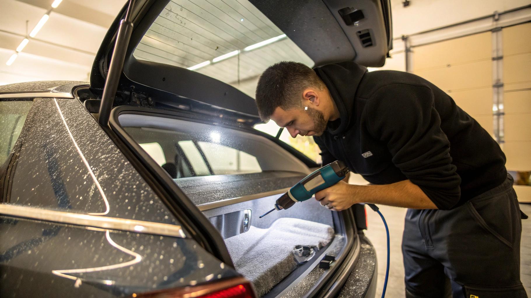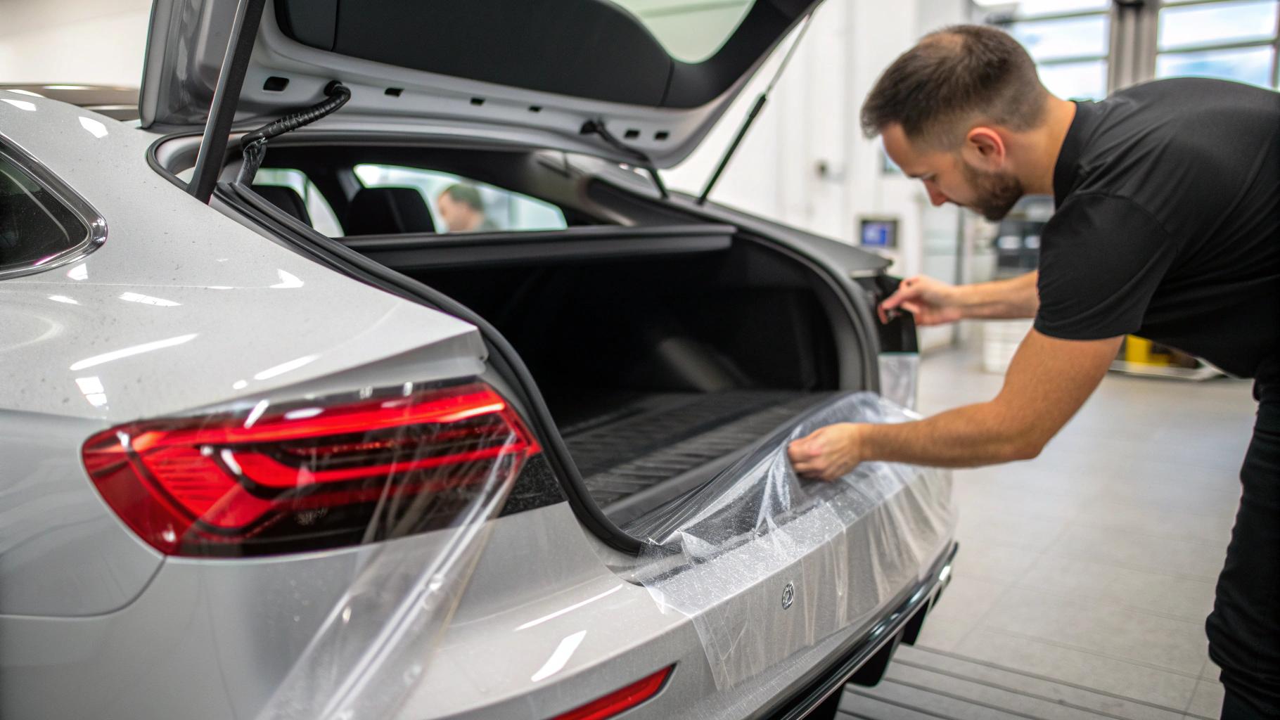 Zabezpieczenie progu załadunkowego za pomocą folii ochronnej to proste i skuteczne rozwiązanie, które chroni ten newralgiczny element samochodu przed codziennymi uszkodzeniami. Próg załadunkowy bagażnika jest szczególnie narażony na otarcia spowodowane wkładaniem zakupów, wózków dziecięcych, narzędzi czy sprzętu sportowego. Folia PPF, czyli Paint Protection Film, tworzy niewidoczną barierę, która absorbuje uderzenia i zapobiega rysom na lakierze.