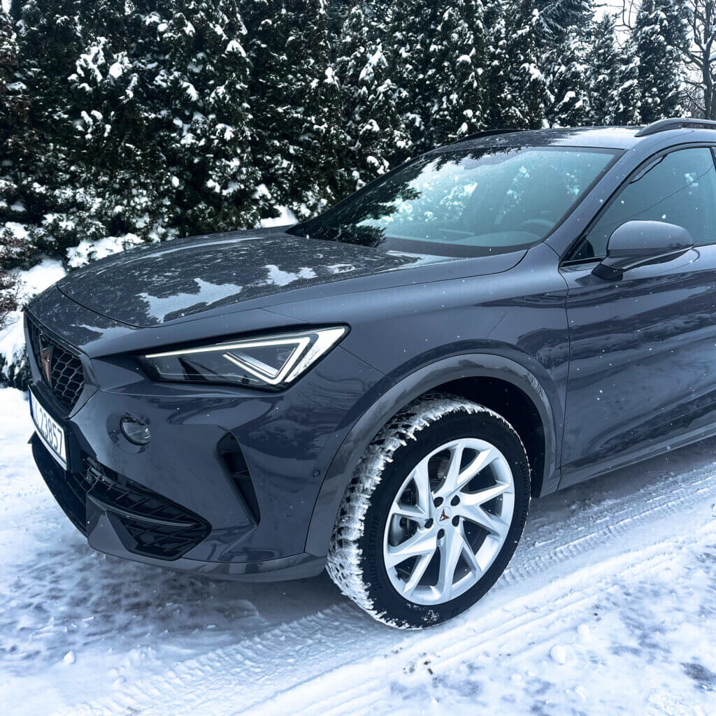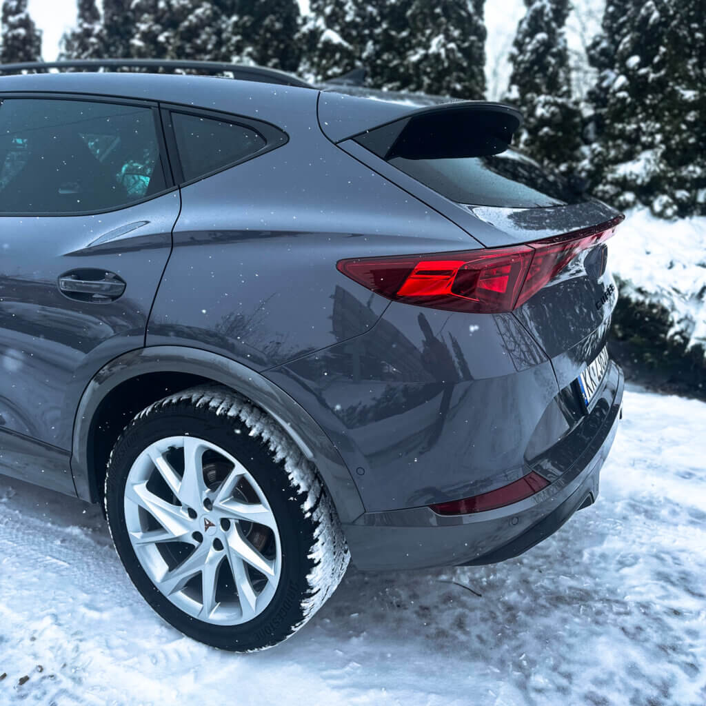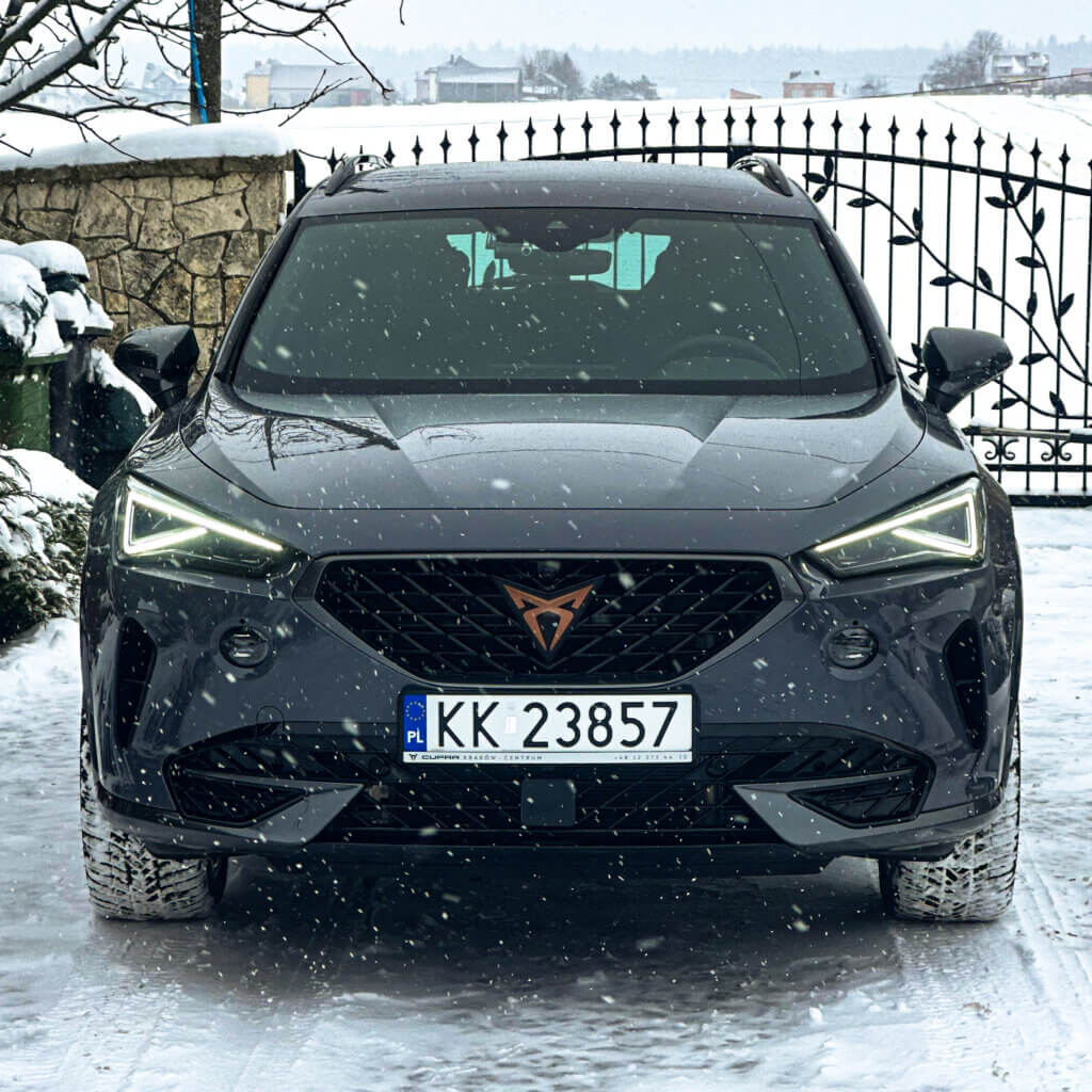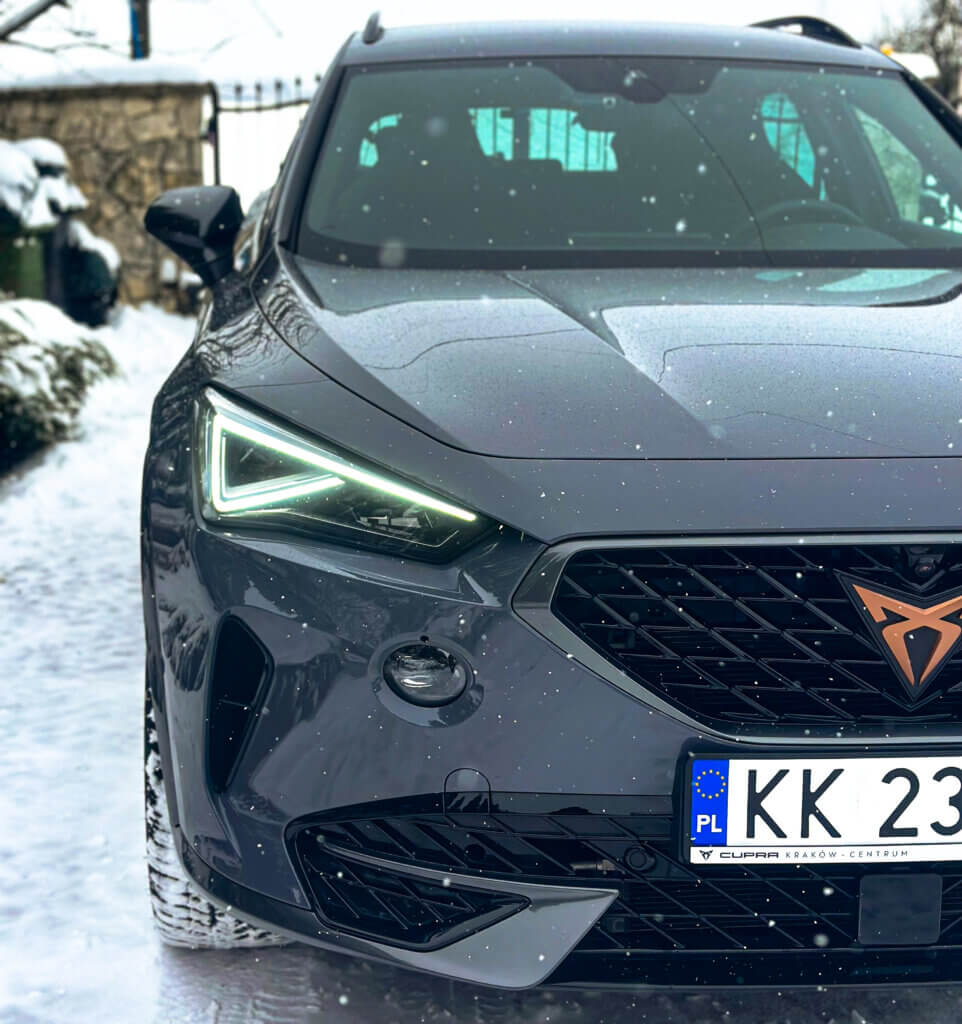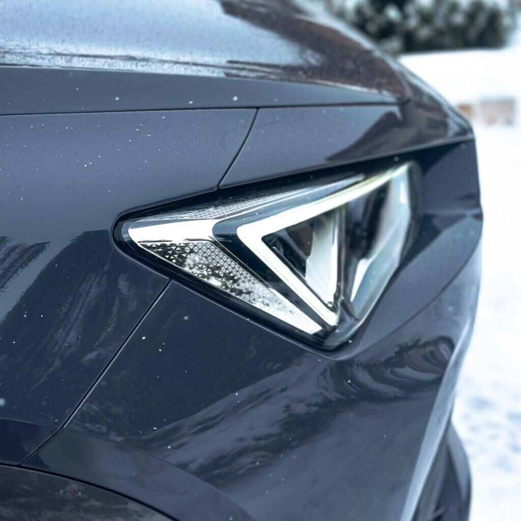 Na tej Cuprze, oprócz zabezpieczenia antykorozyjnego wykonaliśmy najpopularniejszy pakiet zabezpieczenia nowego samochodu czyli oklejenie bezbarwna folia ochronna PPF w pakiecie FULL FRONT, a resztę lakieru pokryliśmy powłoką elastomerową. Dodatkowo zabezpieczyliśmy felgi, szyby, zaciski hamulcowe dedykowaną powłoką ceramiczną.