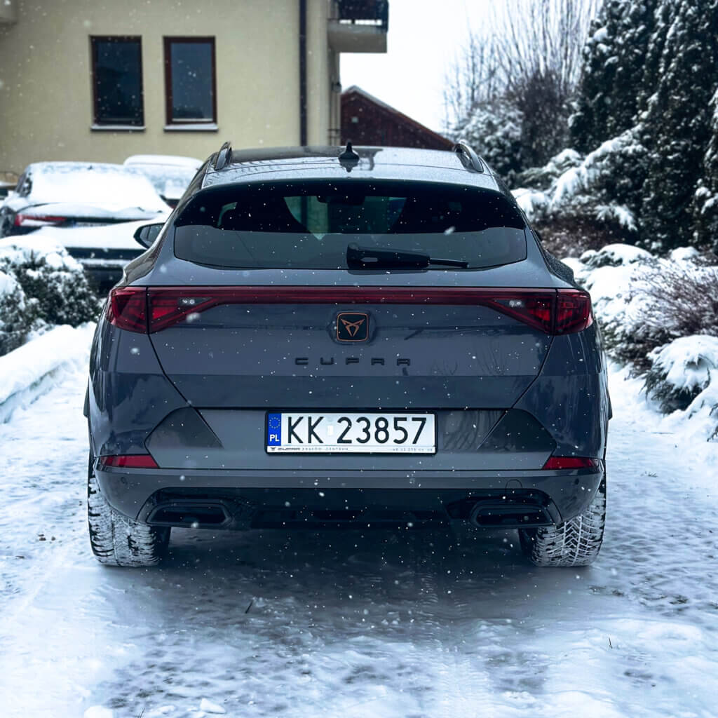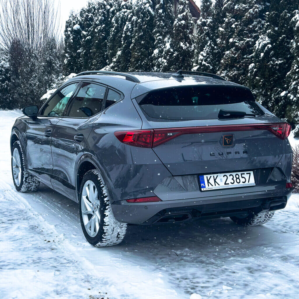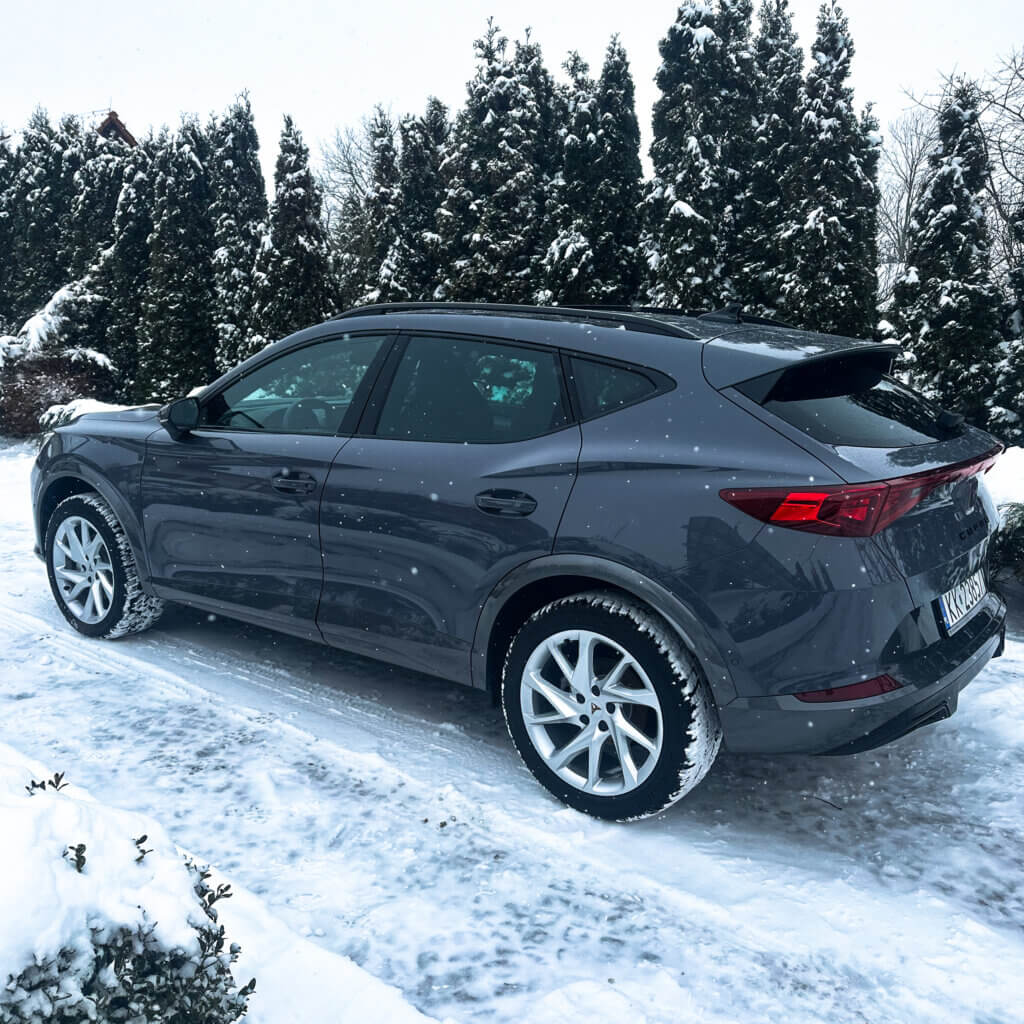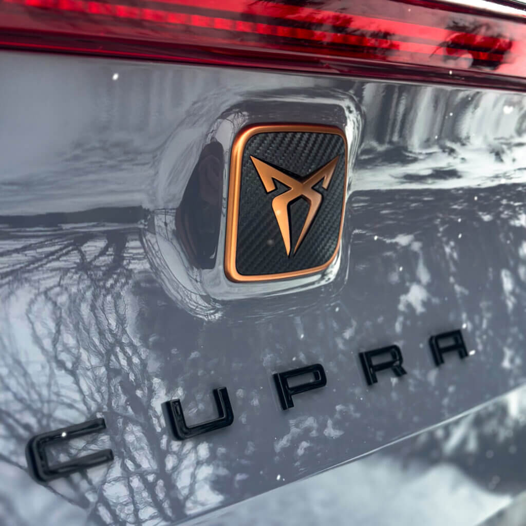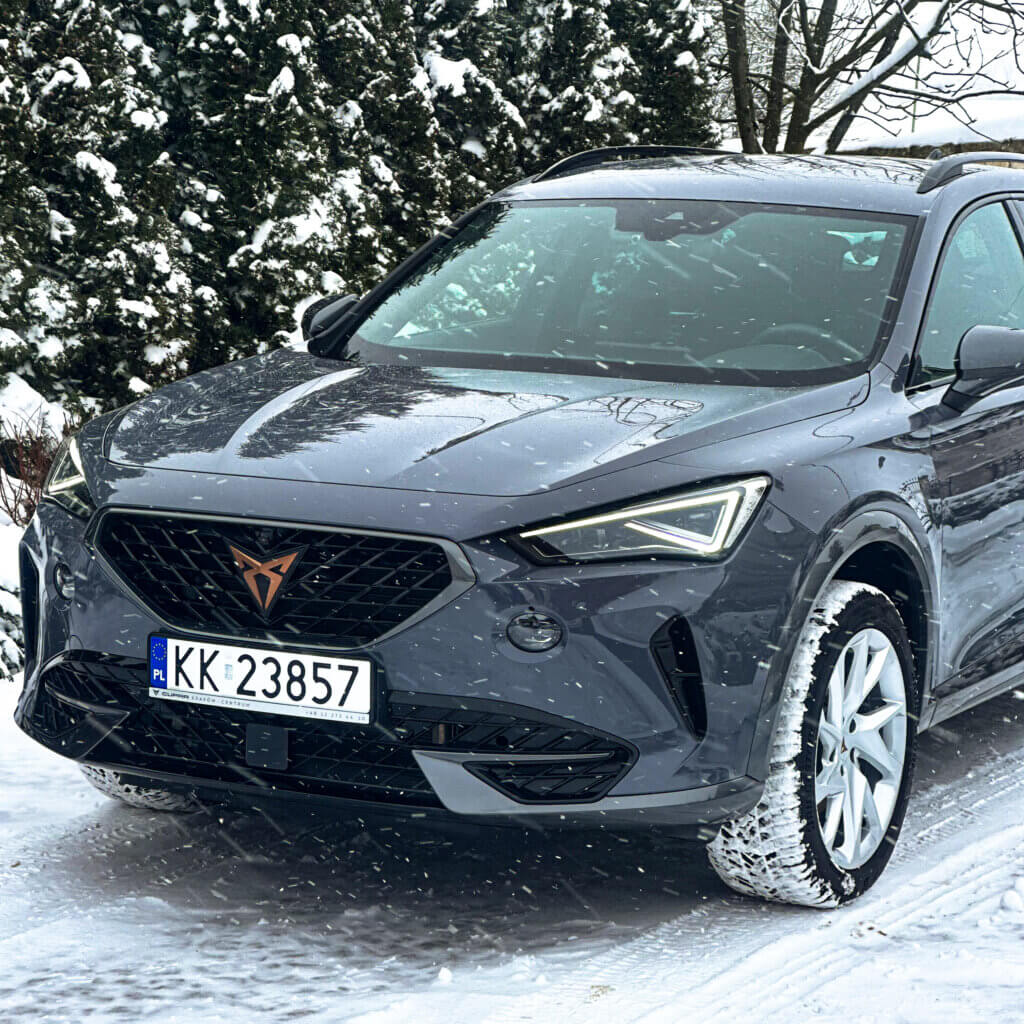Na tej Cuprze, oprócz zabezpieczenia antykorozyjnego wykonaliśmy najpopularniejszy pakiet zabezpieczenia nowego samochodu czyli oklejenie bezbarwna folia ochronna PPF w pakiecie FULL FRONT, a resztę lakieru pokryliśmy powłoką elastomerową. Dodatkowo zabezpieczyliśmy felgi, szyby, zaciski hamulcowe dedykowaną powłoką ceramiczną.